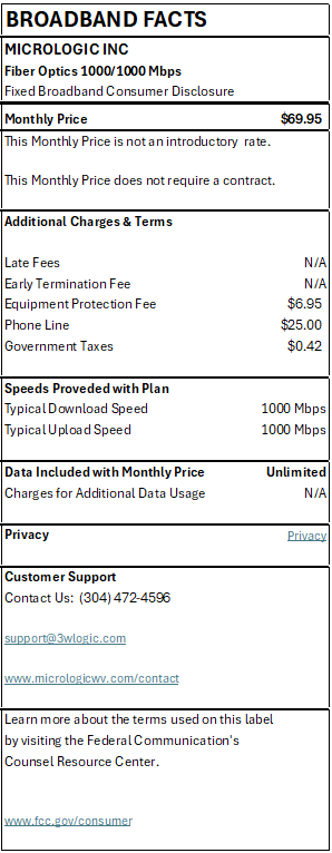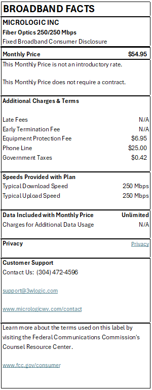 • Interior Wiring: Coverage includes all inside wiring and cabling installed by Micrologic that connects your equipment to outlets or distribution points within the premises. This includes Ethernet (Cat5e/Cat6), fiber, and telephone wiring required to support your internet, or phone service.